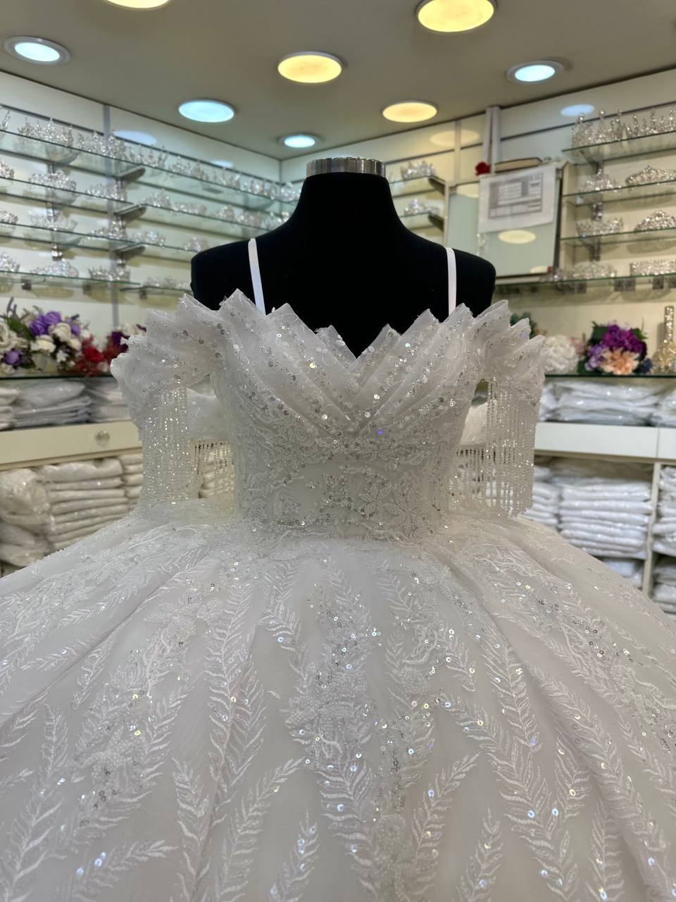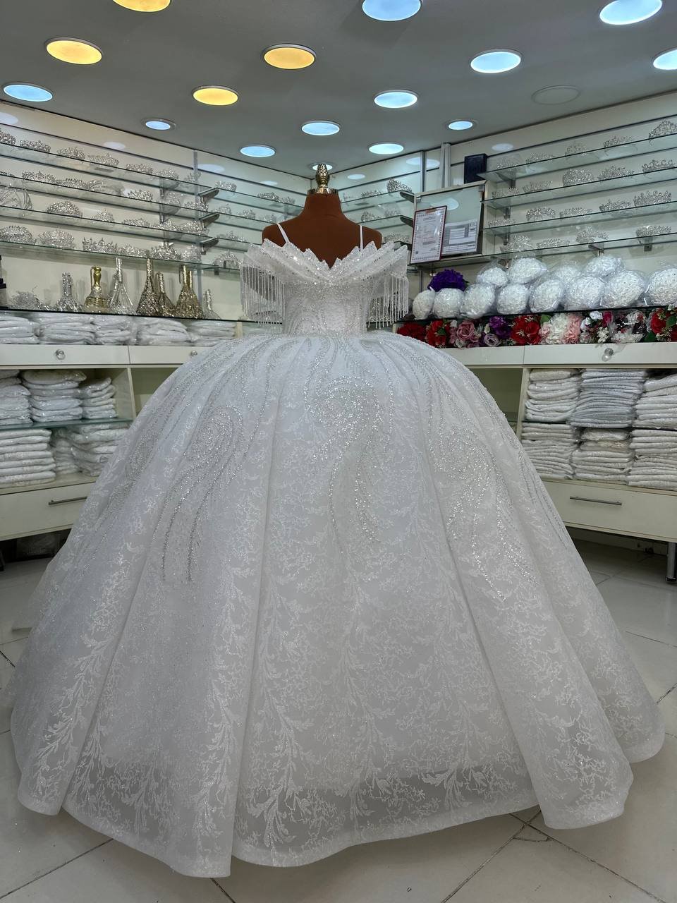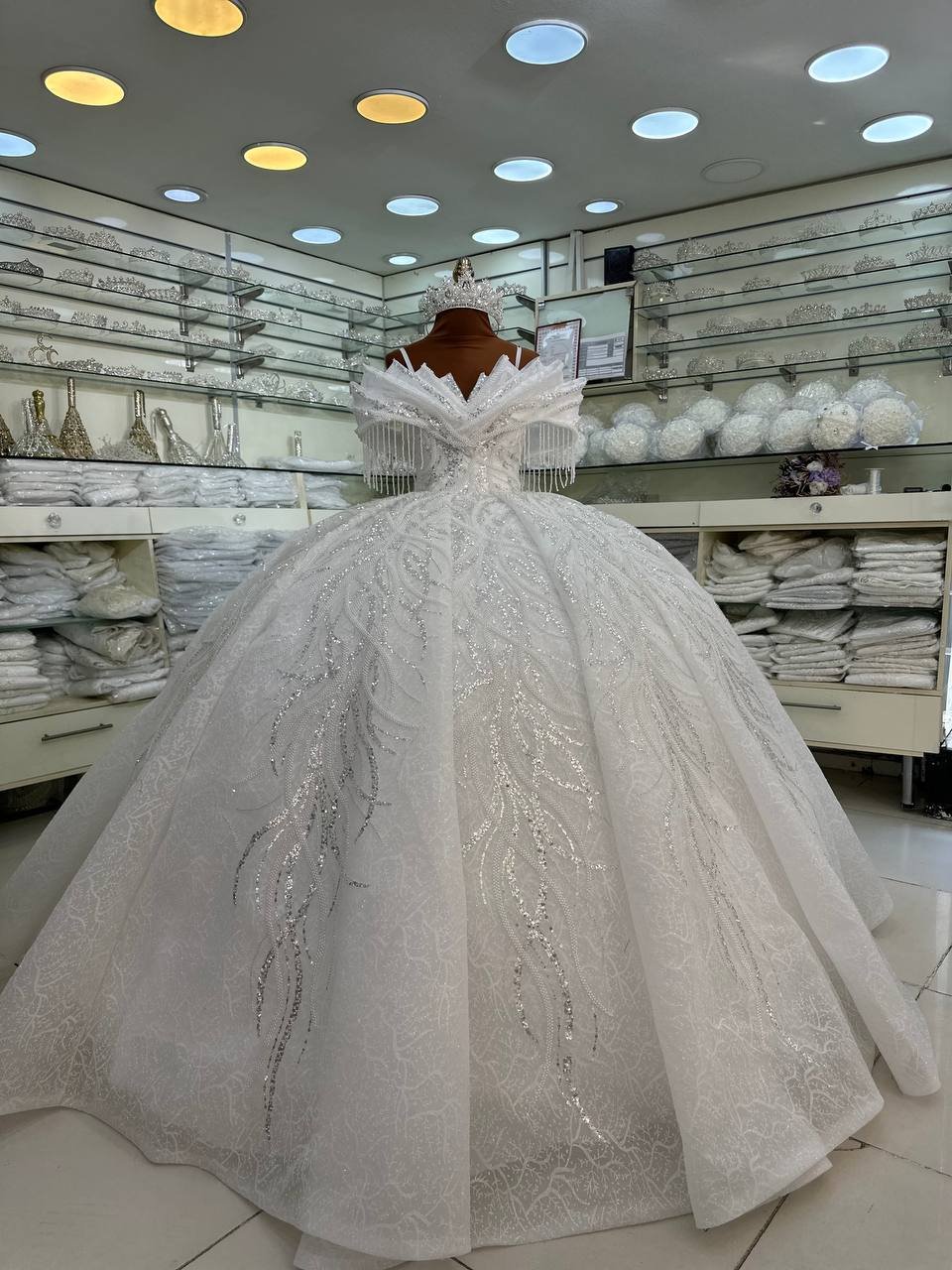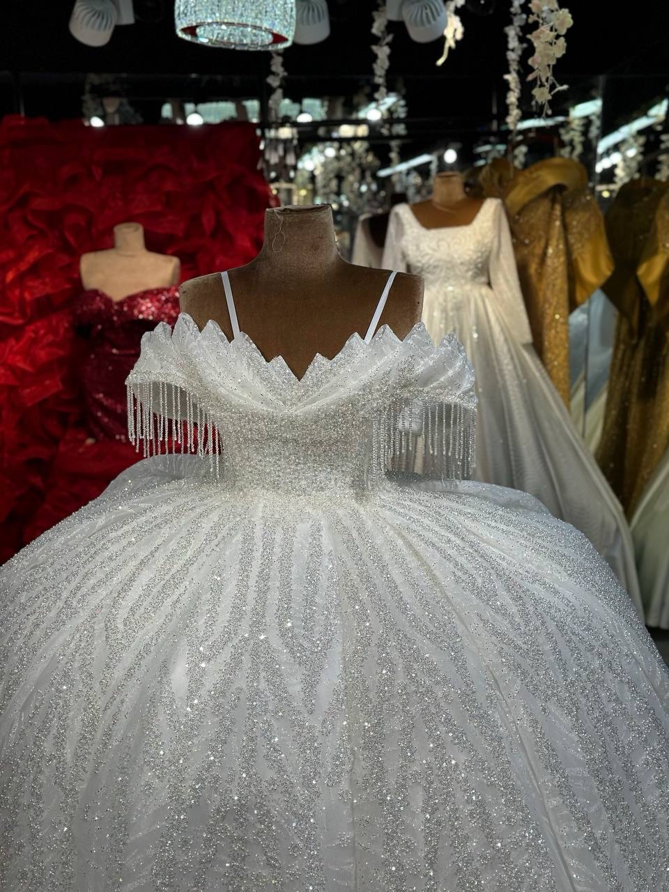 Cette robe de mariée au col bateau avec perlage est une création exquise qui incarne l’élégance intemporelle et la sophistication. Cette robe est conçue pour la mariée qui recherche un style classique avec une touche de glamour.