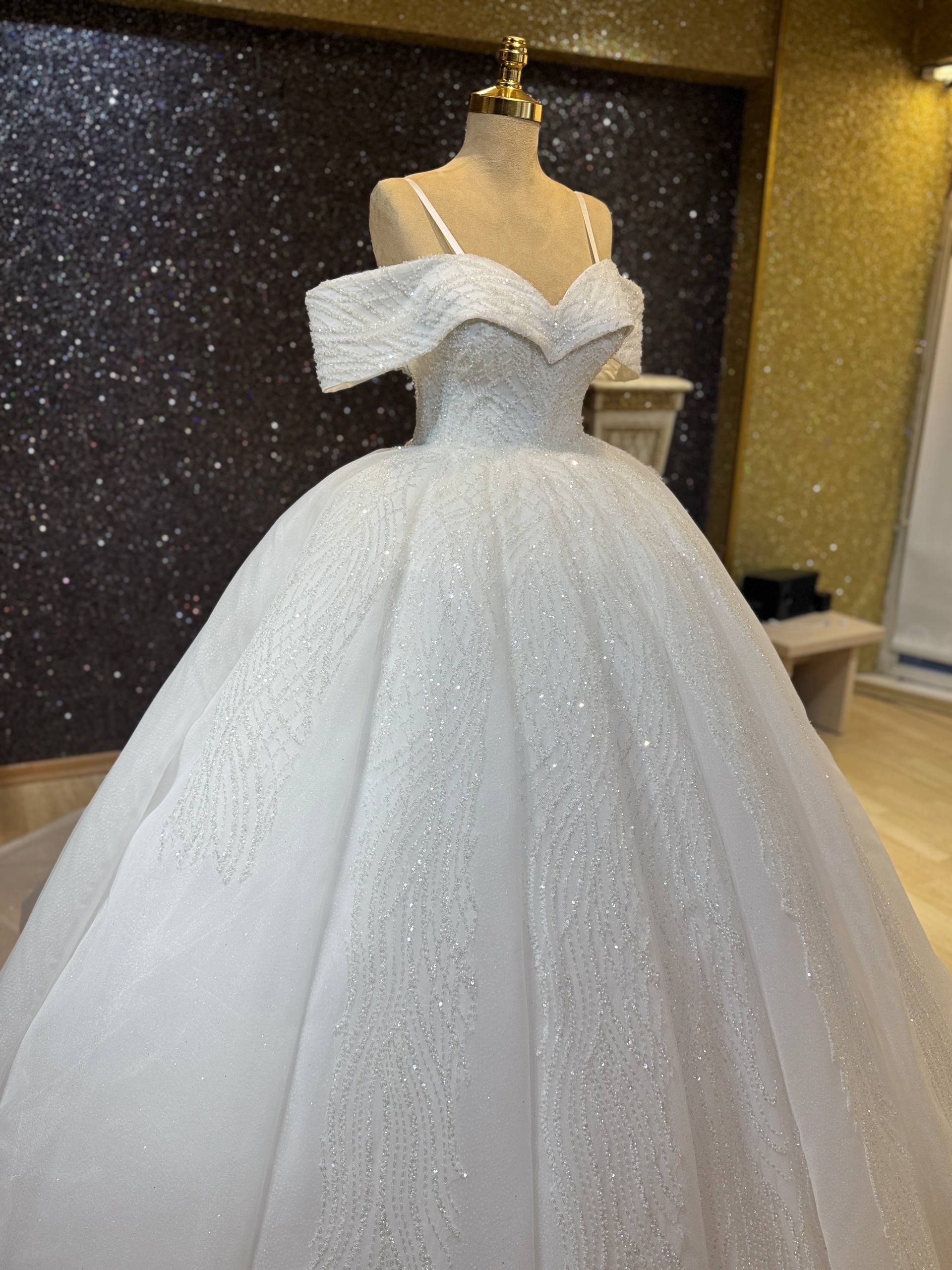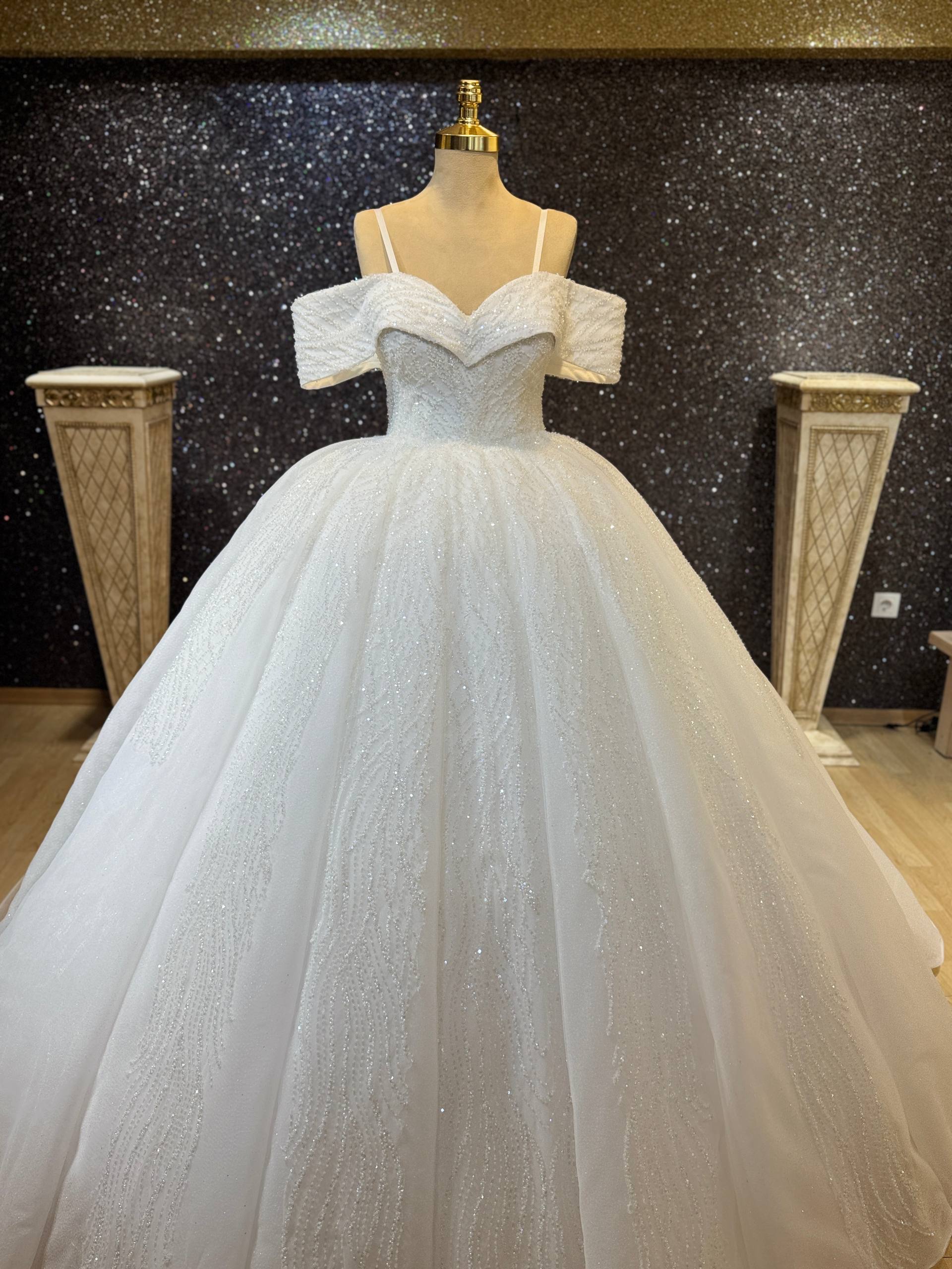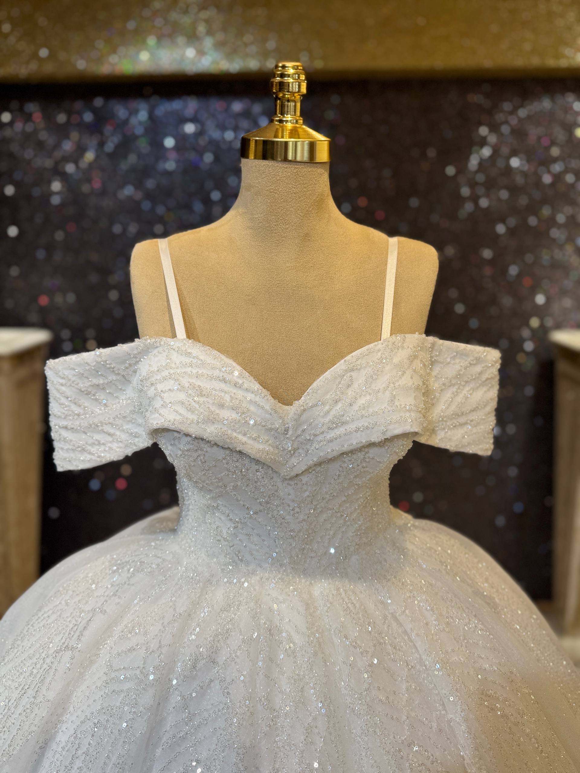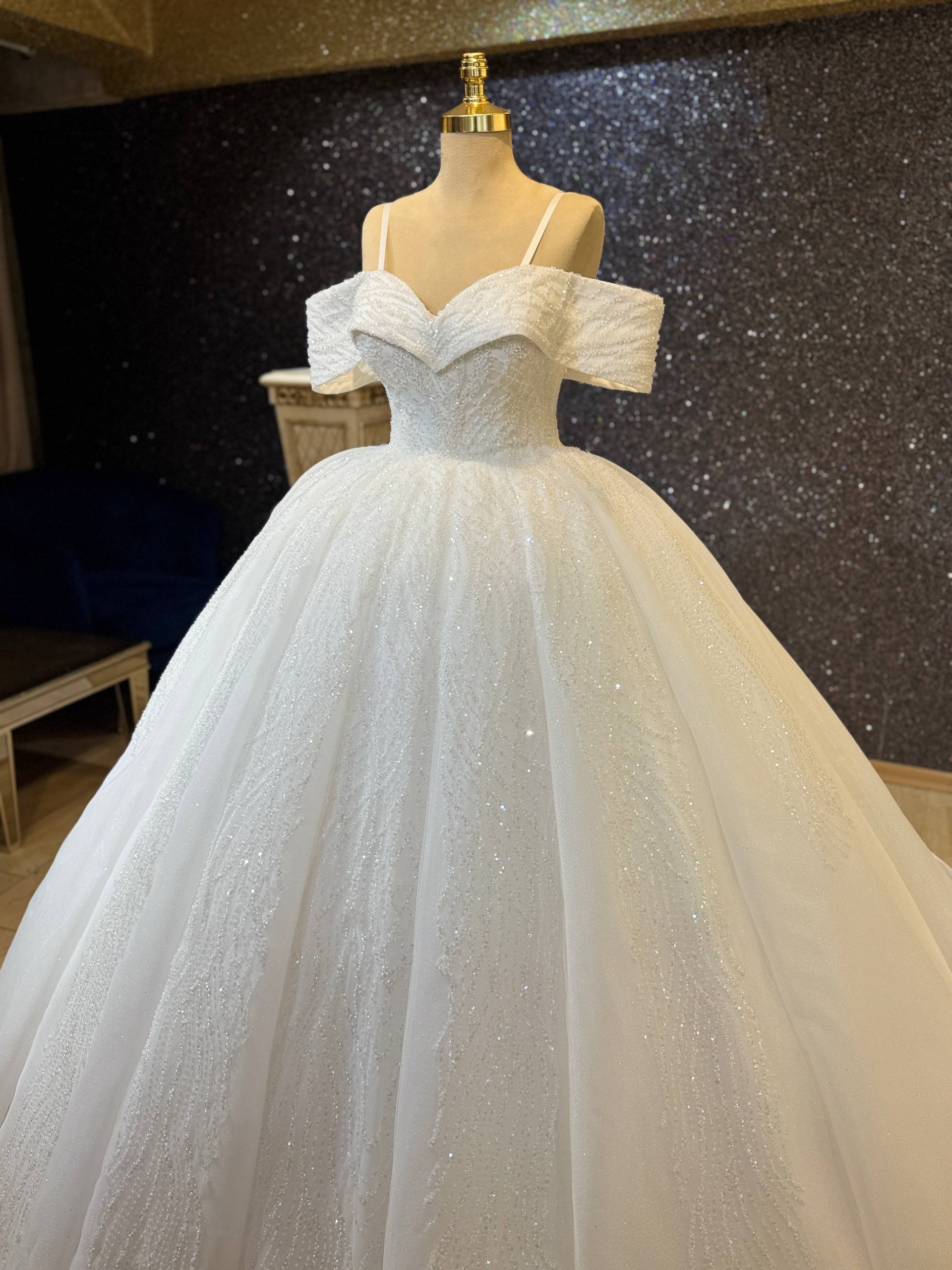 Cette robe de mariée princesse au décolleté plongeant apporte une touche hyper attirante tout en restant élégante avec ses manches longues aux dentelles apportant un look sophistiqué et intemporel