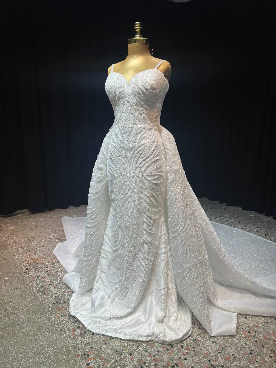 Faites de votre journée spéciale un moment inoubliable dans cette robe de mariée sirène avec sur jupe aux manches différentes qui apporte une touche du hors commun.
