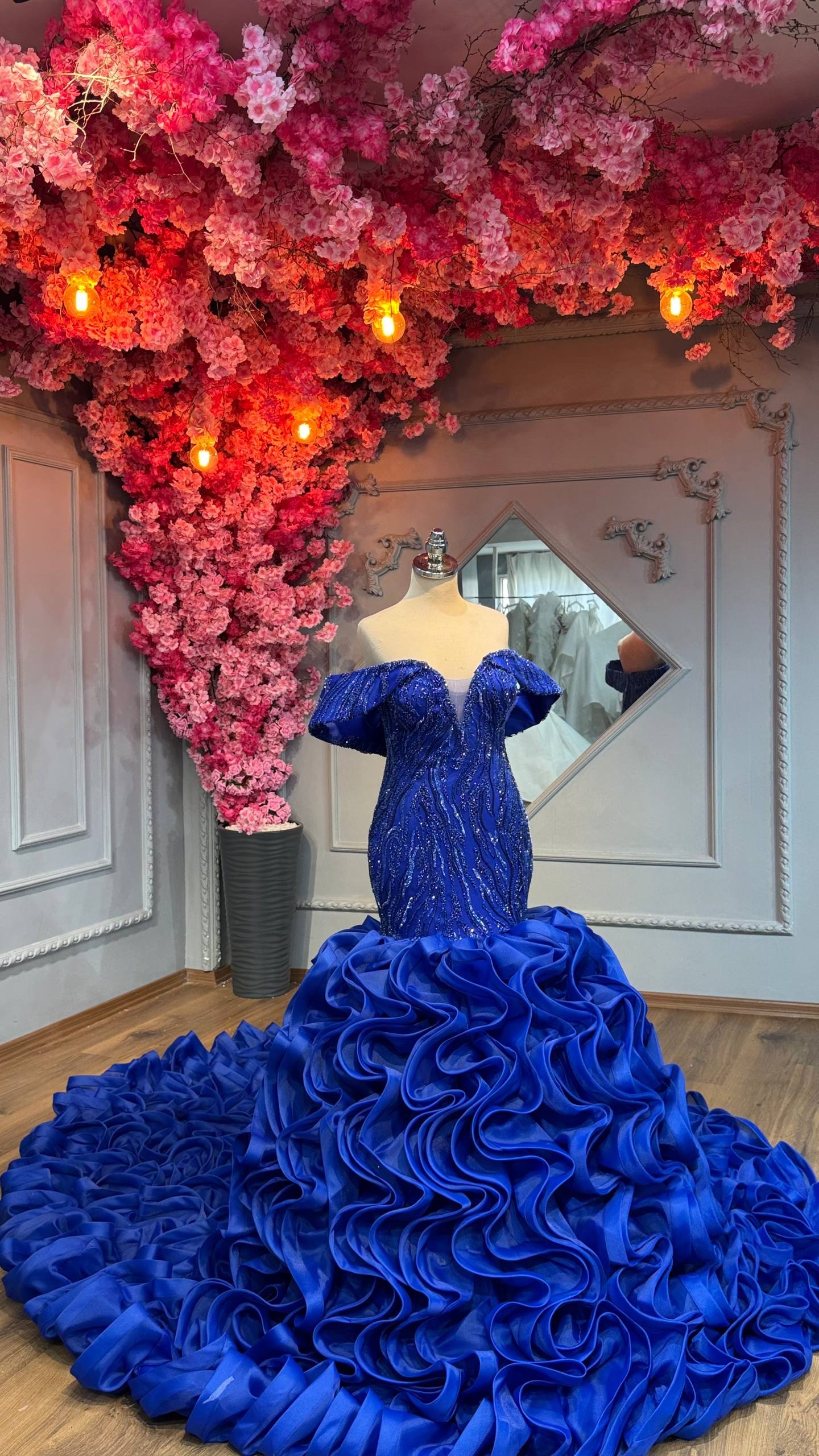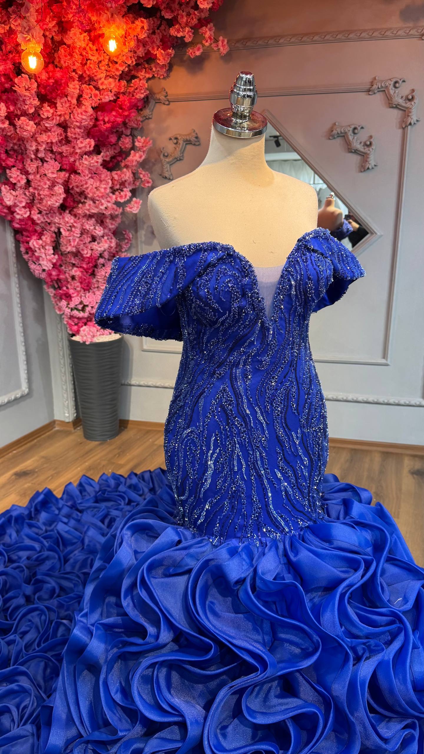 Plongez dans la sensualité et l’élégance avec notre robe de mariée sirène. Cette robe est conçue pour embrasser chaque courbe de votre silhouette, mettant en avant votre féminité naturelle. Chaque détail de cette robe est une œuvre d’art en soi